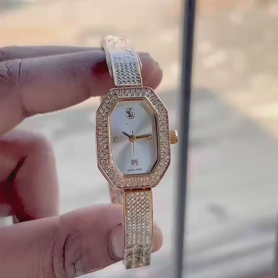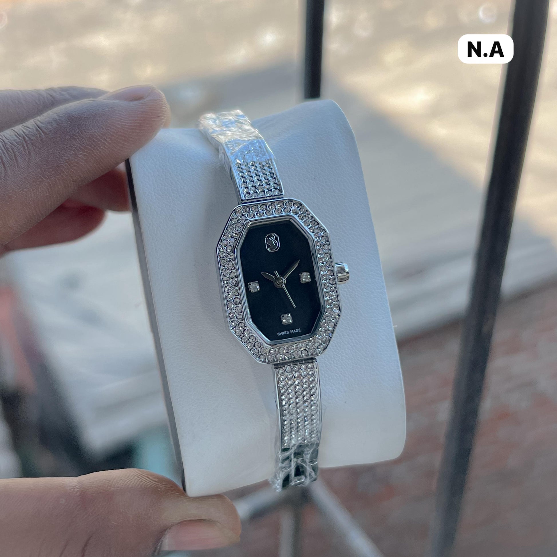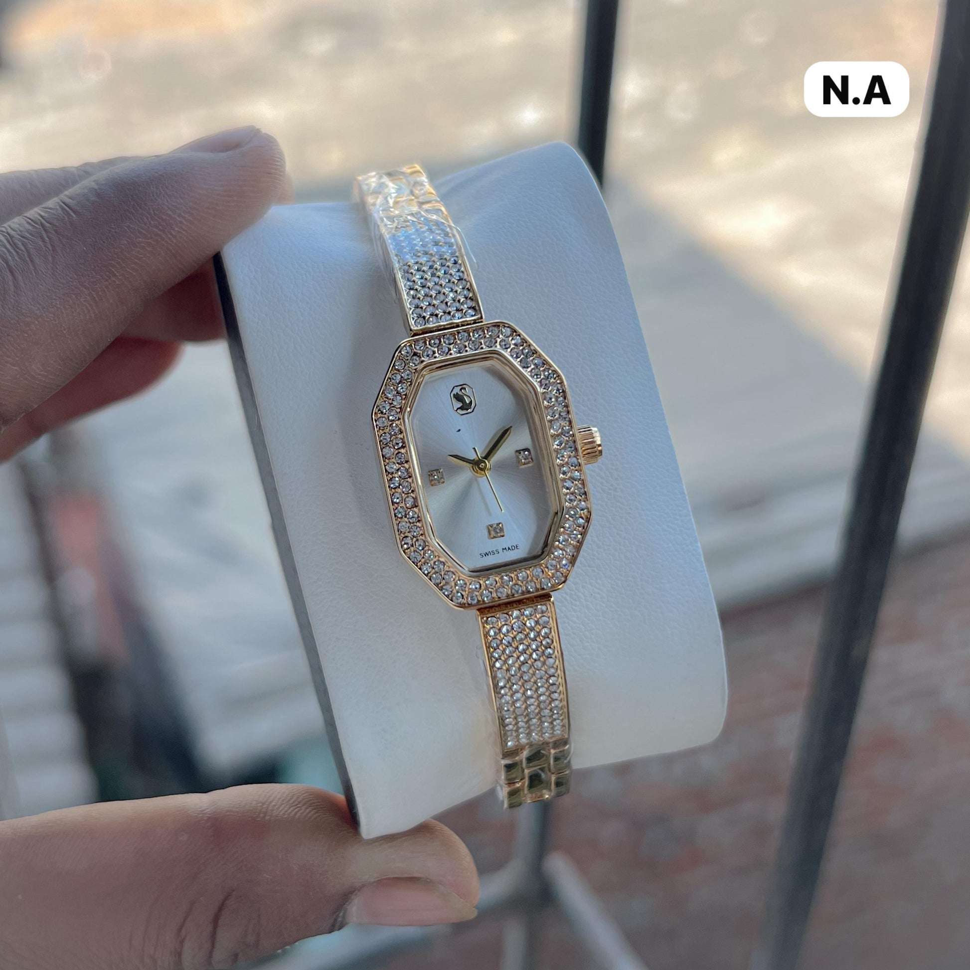 *Elegant Swarovski women’s watch featuring a rose gold body and a vibrant emerald- white dial. Adorned with sparkling crystal 😍*